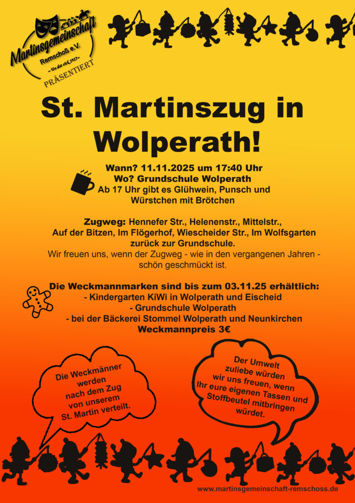 Grundschule Wolperath-Schönau. Start des Martinszuges: 17:40 Uhr.